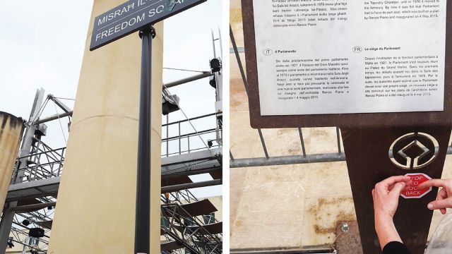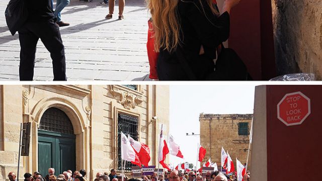 anonimowi przechodnie, mieszkańcy Malty protestujący przeciwko korupcji, policjanci przyglądający się akcji z umiarkowanym zainteresowaniem, pasażerowie komunikacji miejskiej, wszechobecni turyści