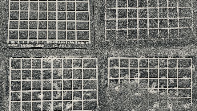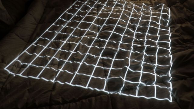 photographs ‘through’ a geometric diagram of an orthogonal grid and