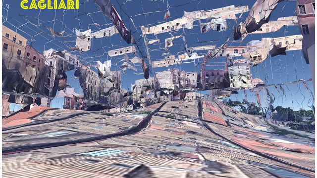 Postpostcards are a series of postcards generated by a computer program outside the place they refer to. They are a souvenir from a virtual trip, not a real one, which is why the first deformation operates on the level of the postcard. The second deformation can be seen in the images themselves since they were created in Google Earth, that is, by stitching a network of satellite images.